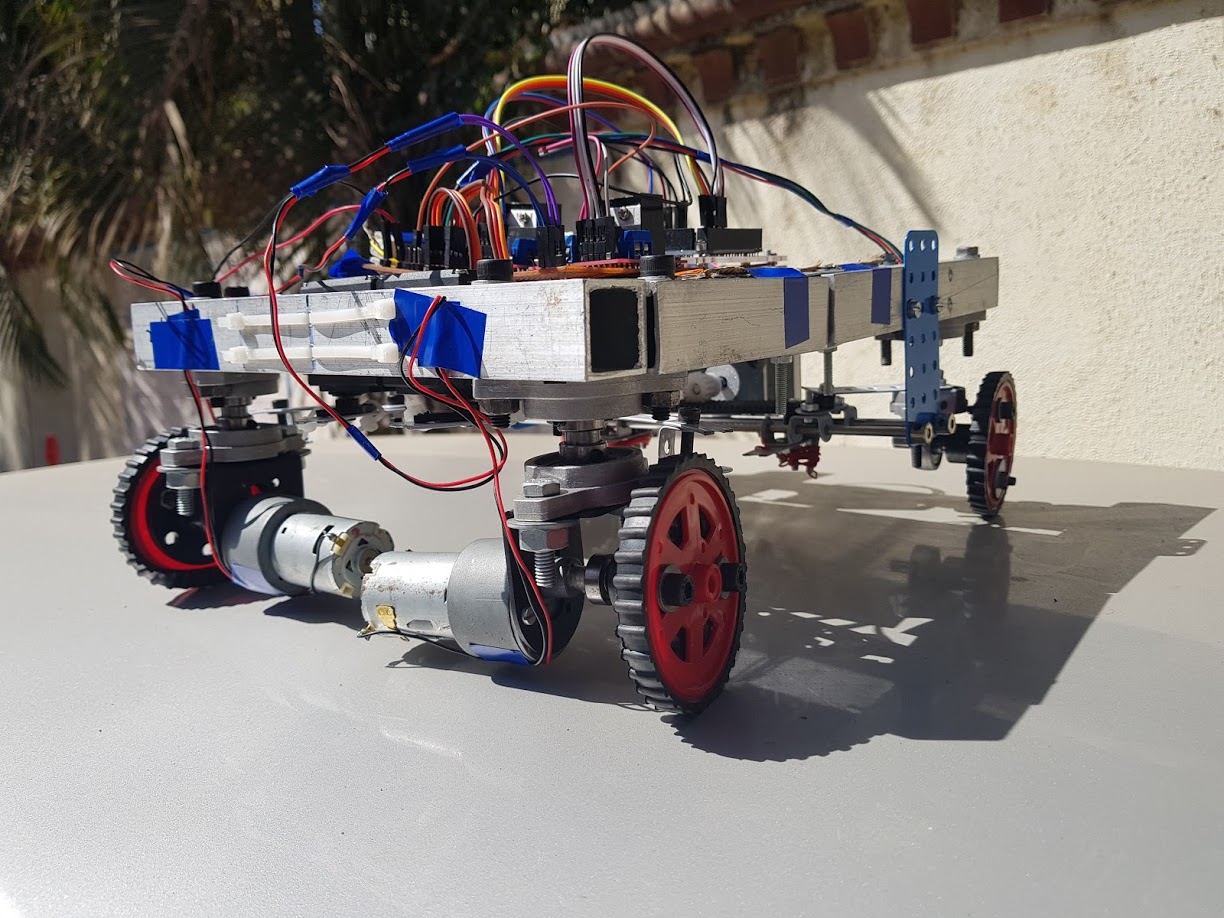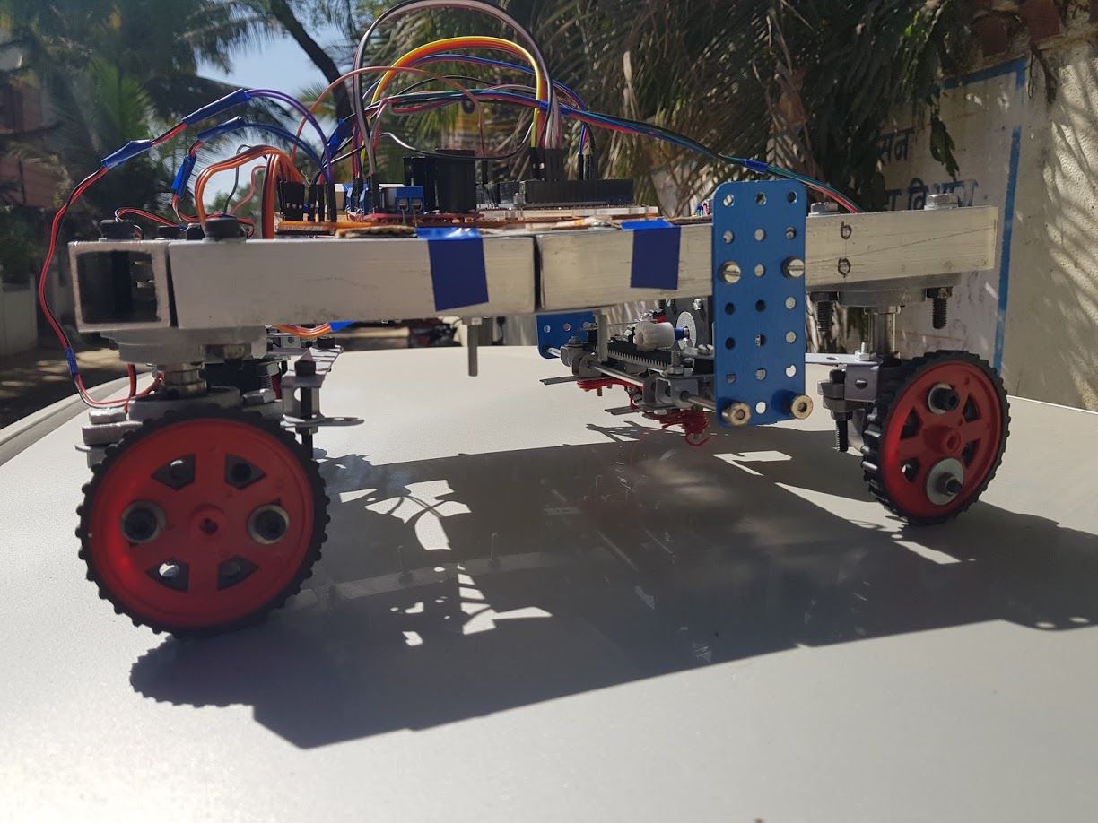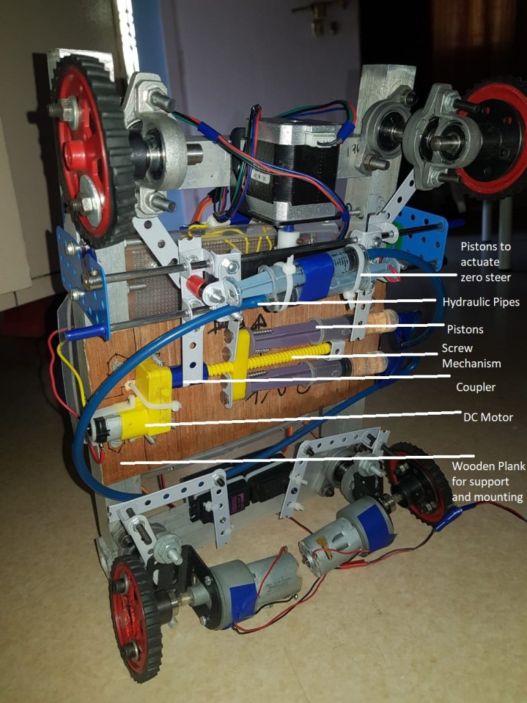 This indicates that the proposed build has been successful in integrating 2WS (conventional steering system), 4WS (counter phase steering) and zero turn steering systems in a comprehensive electro-mechanical system combined with hydraulic systems as one robust package.