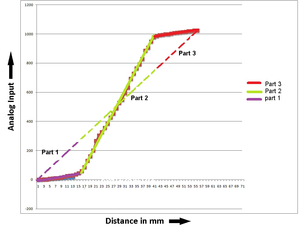 Distance the potentiometer moves, v/s the angle the steering turn. Please refer to the report for further information.