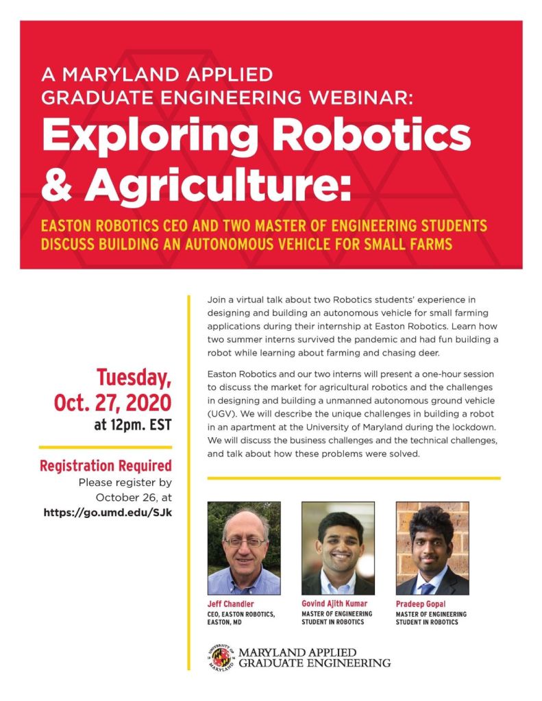 - Delivered a talk regarding the technical build and challenges faced by me, hosted by the Maryland Robotics Center at the University of Maryland.